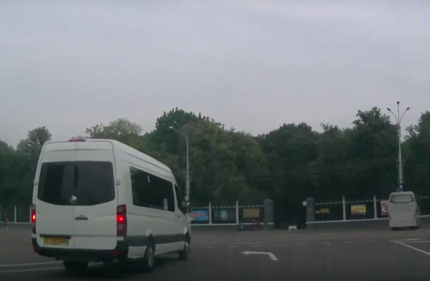 Водитель маршрутки не стал ждать поток и выехал на перекресток через сплошную