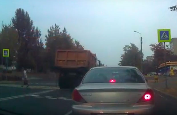В Гомеле водитель МАЗа пронесся по зебре, когда на ней были пешеходы