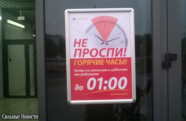 Теперь по пятницам и субботам «Евроопт» будет работать до 1.00, в остальные дни магазин по-прежнему закрывается в 23.00.
