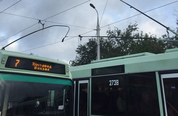 Сегодня утром в районе остановки «Завод Торгового оборудования» произошла авария с участием двух троллейбусов.