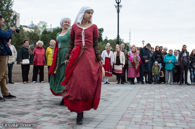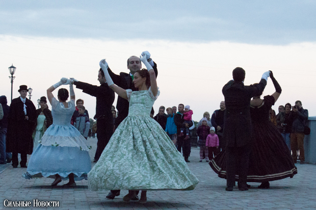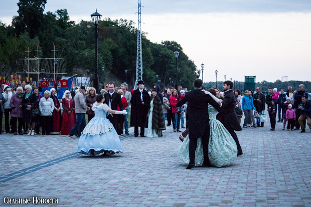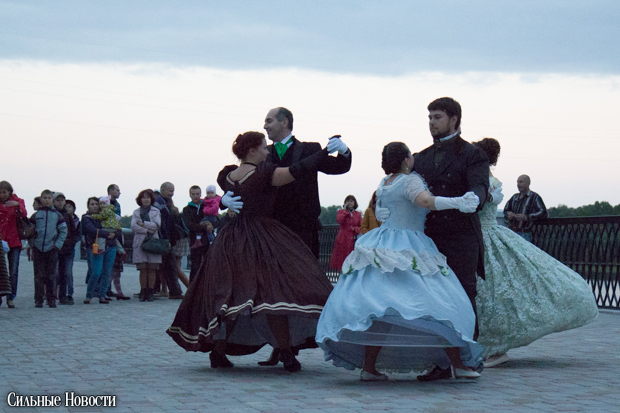 Времена, когда Гомель после разделов Речи Посполитой отошёл во владения Российской империи, продемонстрировали бальными танцами от коллектива «Кружево шагов». Вальсы, польки, кадрили.