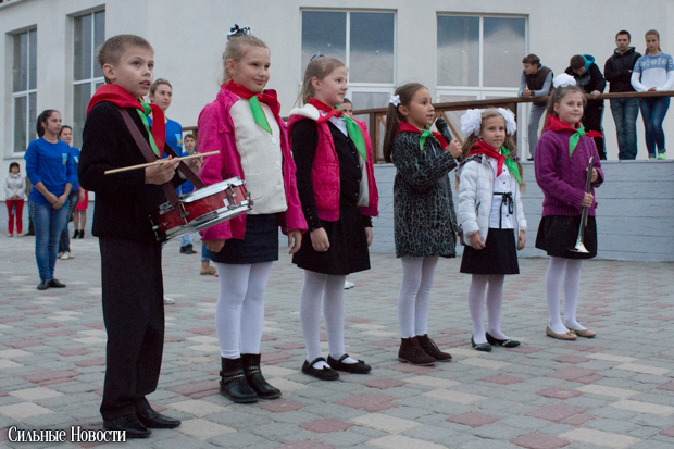 Послевоенное советское время представили малыши-пионеры. Девушки в синих костюмах устроили танцевально-спортивное действо, которое должно было напомнить о советских спортивных победах на Олимпиаде'80.