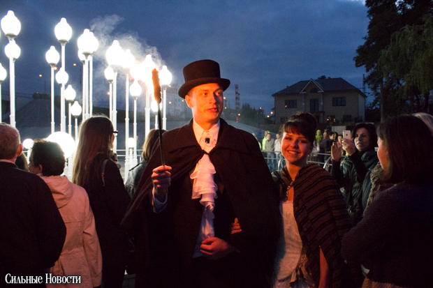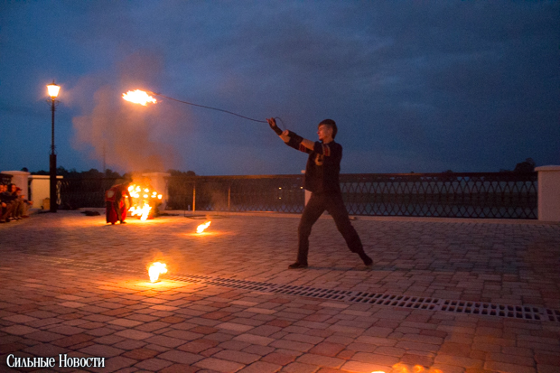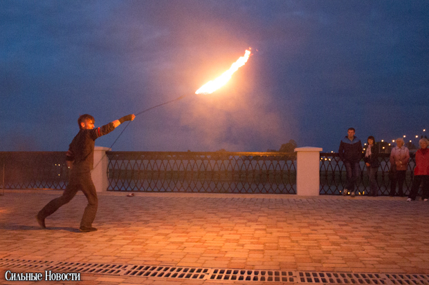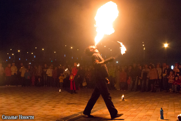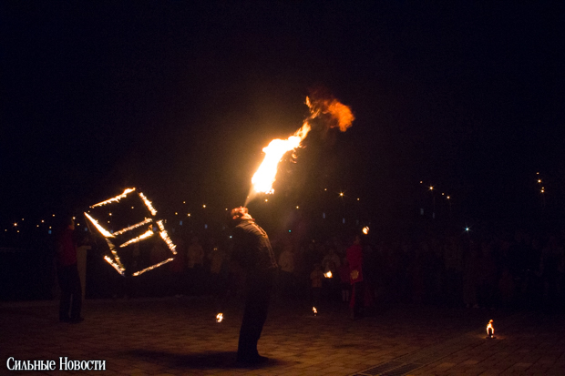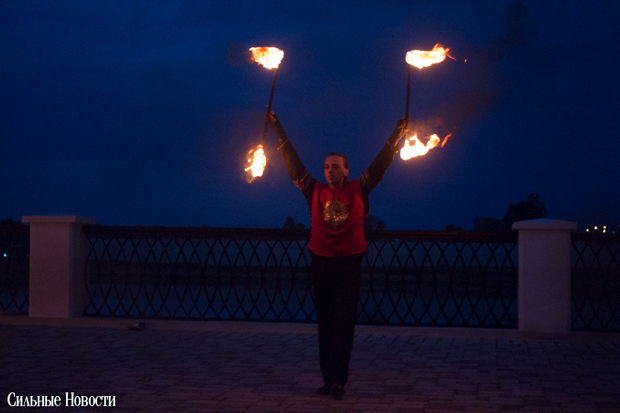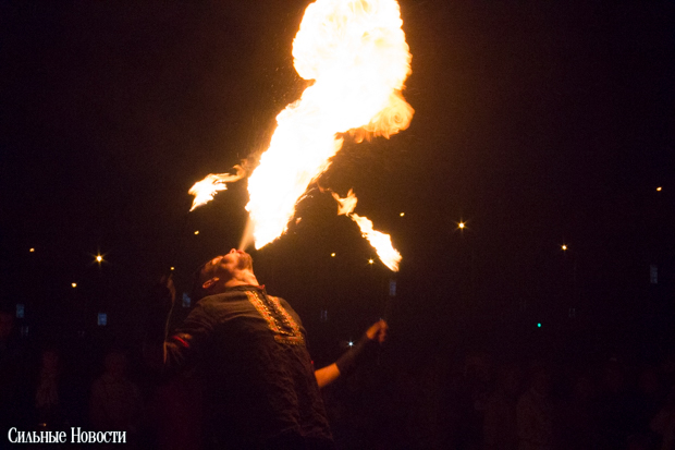 После ведущий в костюме девятнадцатого века, который, видимо, символизировал графа Паскевича, зажёг «Маяк» факелом, а заклинатели огня из коллектива «Атеш» устроили для гомельчан файер-шоу.