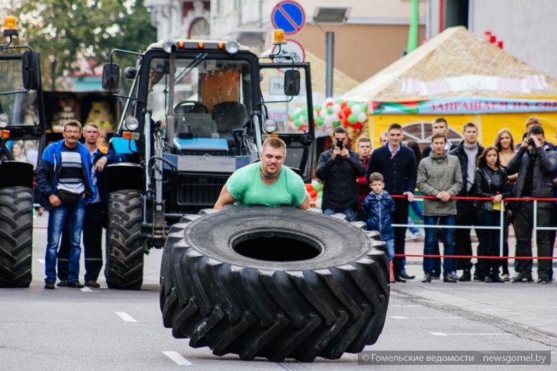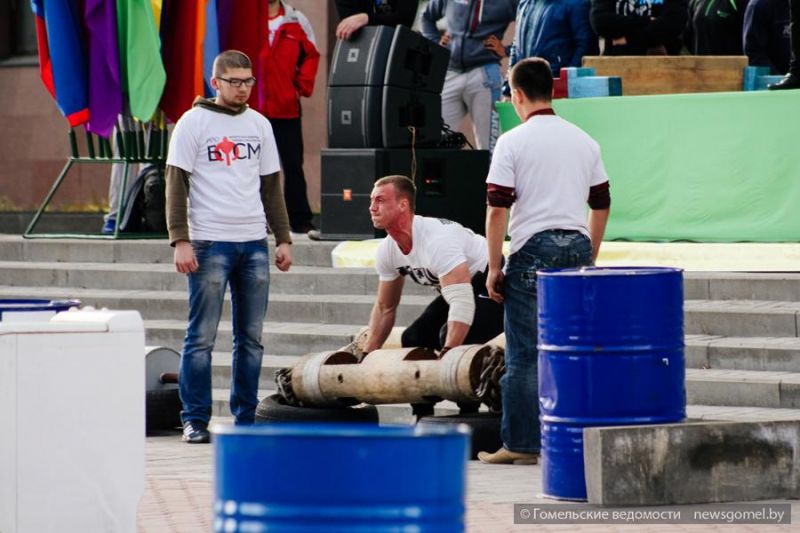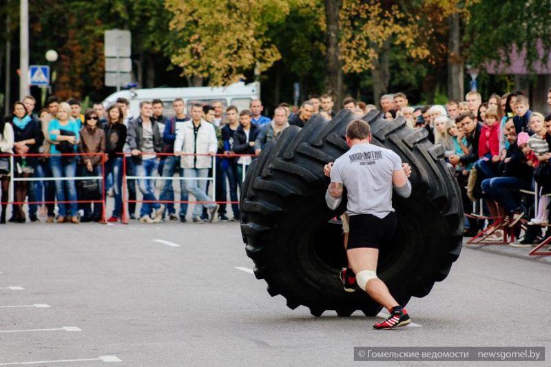 В этом году испытания на конкурсе было решено немного усложнить. Традиционно гомельские стронгмены переворачивали шины, поднимали на время бревно, которое «подросло» до 110 килограммов, буксировали трактора (вес которых превышает пять тонн), а также на время грузили на бочки тяжёлые камни и стиральные машины.