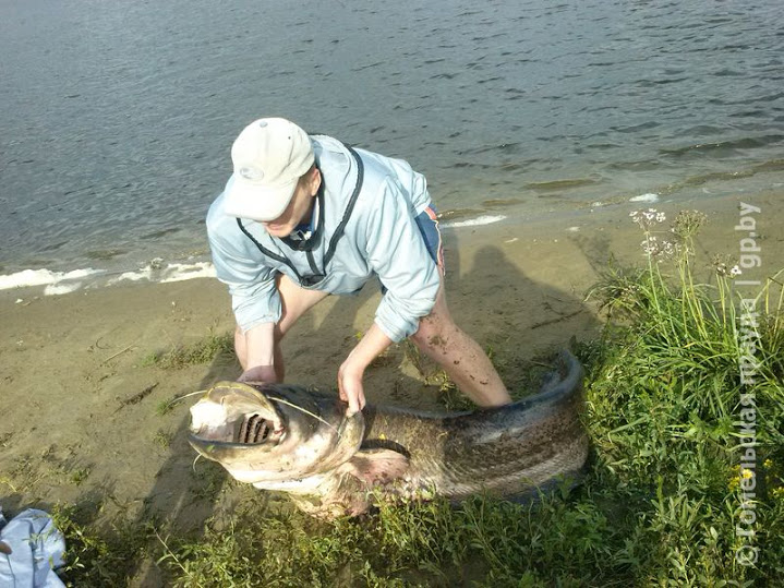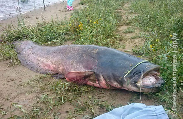 Гомельчанин поймал в Днепре двухметрового сома весом в полцентнера
