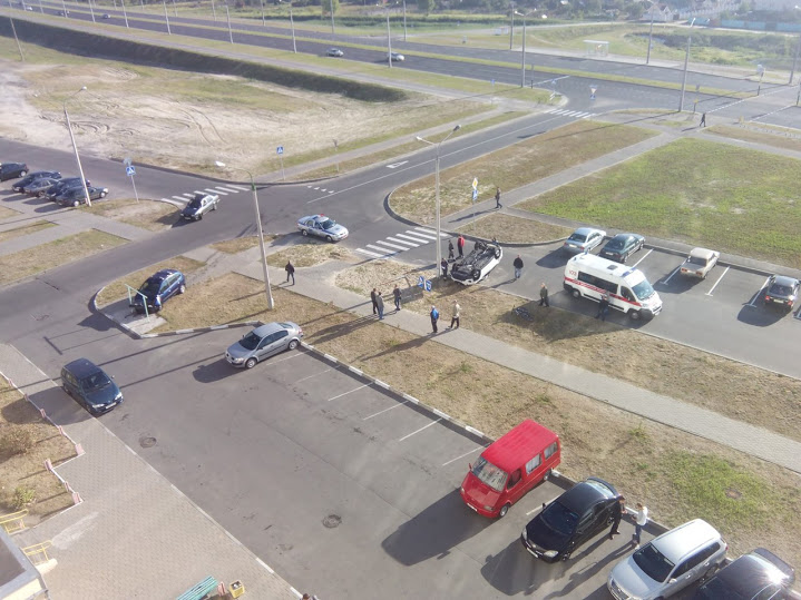 Сегодня приблизительно в 8:30 утра на улице Мазурова недалеко от средней школы № 72 столкнулись два автомобиля.