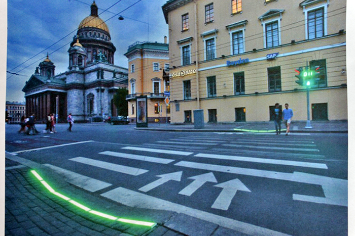 Пешеходам, напротив, приготовили бонус. Впервые в Гомельской области на переходах под ногами уложат светодиодную ленту, которая будет дублировать зелёный или красный сигнал светофора. Сами светофоры также установят нового образца.