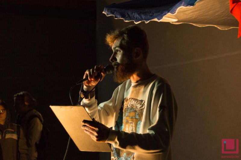 Время от времени звучали антивоенные стихи в исполнении одного из организаторов — Александра Курца. Он поделился мнением, зачем нужны подобные акции.