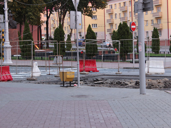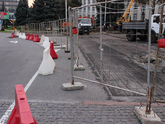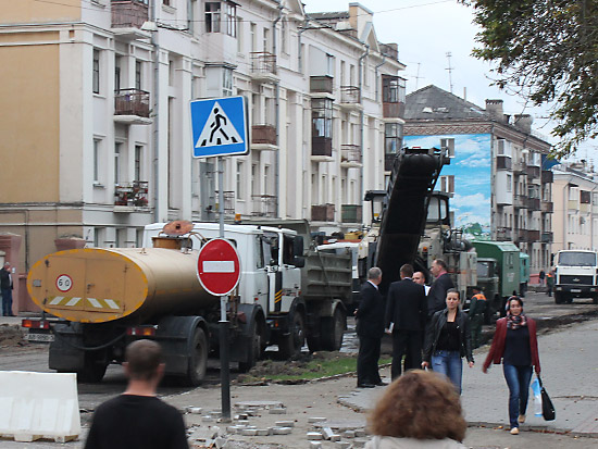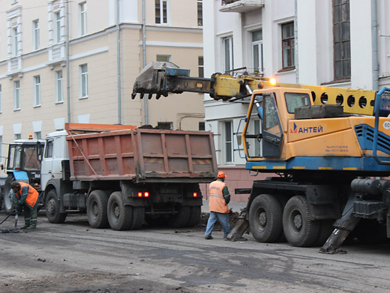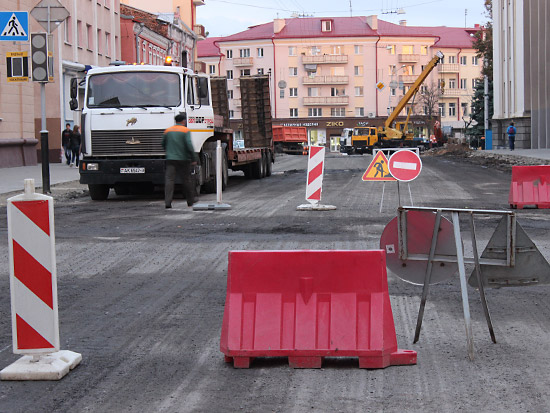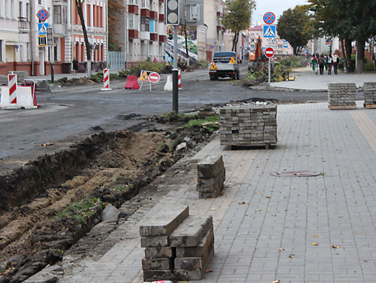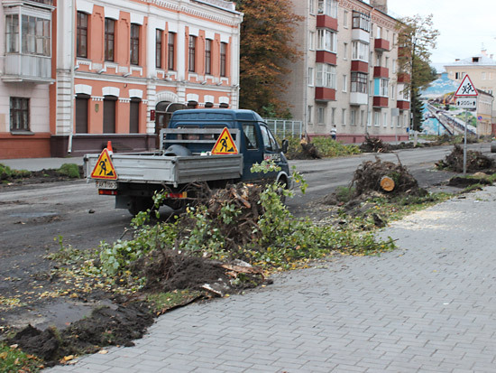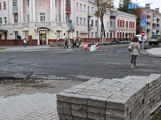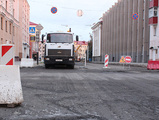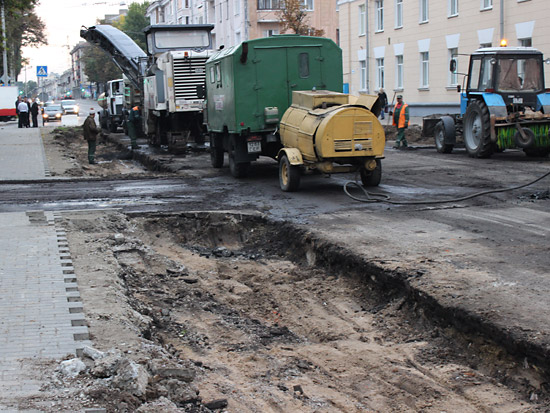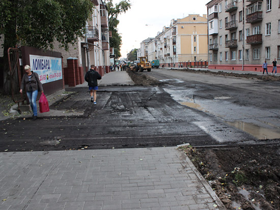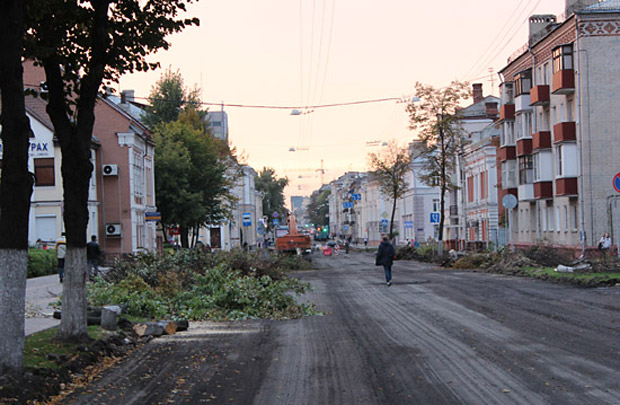 Верхний, старый слой асфальта уже снят практически по всей длине реконструируемого участка улицы, а также на некоторых участках тротуаров и въездов во дворы. Выкорчевываются деревья, мешающие расширению улицы за счет тротуаров. Пока автомобили «прорываются» от проспекта Ленина до Советской по улицам Жарковского и Ирининской, но ремонтники обещают, что вскоре это транзитное движение транспорта прекратится.