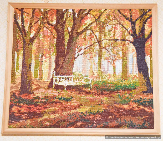 Вышитые вручную картины (а навскидку их более двадцати) все на почётном месте — на стенах: «счётная гладь», «теневая гладь», «александровская гладь»...