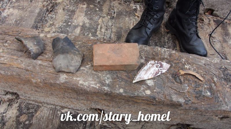 На самой барке и рядом с ней было сделано ряд интересных находок второй половины 19 века. Во-первых, это обломки нескольких типов кирпичей.