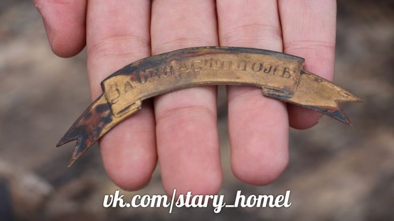 Наиболее значимой находкой стала наградная металлическая лента на головной убор с надписью «За Севастополь», которая выдавалась за мужество и храбрость, проявленные в обороне Севастополя в 1854-1855 гг. Подобные ленты использовались в период с 1855 по 1886 гг. Существовало несколько их разновидностей. Наша лента была пожалована матросу флотского экипажа.