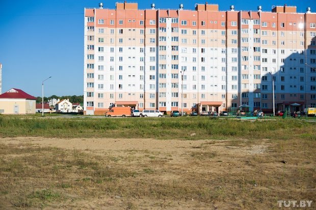 Десятиэтажка в 104-м микрорайоне, что в Новобелице, где молодая пара построила свою квартиру, выросла быстро. Пока супруги жили у родителей, делали ремонт. Настало время переезжать в собственное жилье, но возникла проблема: за три года после постройки дома в спальном районе появился только магазин. Никаких школ, садиков, поликлиник: вместо них — пока только пустыри.