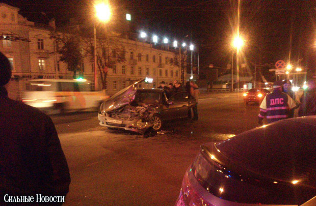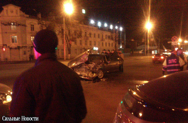 Вчера вечером, примерно в 23.10, около универмага «Гомель» произошло дорожно-транспортное происшествие с участием микроавтобуса «Мерседес» и легкового автомобиля той же марки.