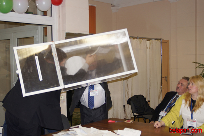 На стол посыпались бюллетени. Наблюдатель от «Справедливого мира» Анатолий Ильинчик поднялся, как будто даже к столу хотел подойти. Но председатель тут как тут: «Нельзя!». «А стоять? Можно, я буду стоять?» — не успокаивался наблюдатель. «А где в Избирательном кодексе написано, что можно стоять? Нет там такого!», — председатель комиссии торжествует.
