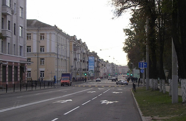 Соответствующие дорожные знаки установлены на пересечениях улиц Кирова — Рогачевская, Интернациональная — проспект Ленина и со стороны Барыкина — Фрунзе.