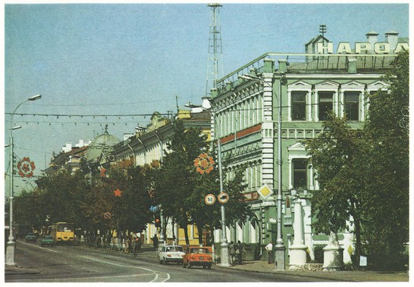 Фонари в начале Киевского спуска, снесенные в начале 2000-х. Открытка 1986 года