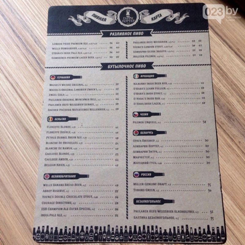 Всего в меню заведения представлено более 45 сортов пива из Англии, Бельгии, Голландии, Германии и других стран Европы. Пока «Гарри Портер» работал в тестовом режиме, гомельчанам особенно пришлось по душе пенное со вкусом банана и овсяное пиво.