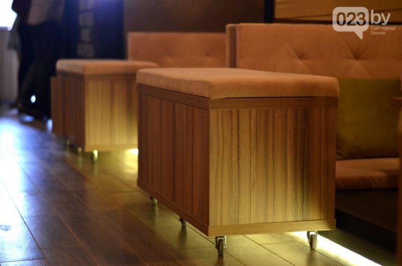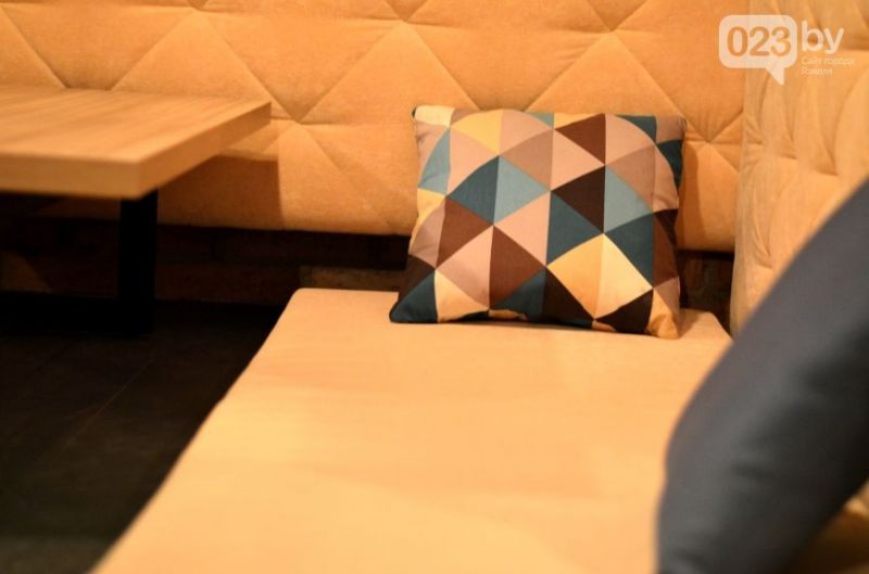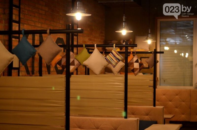 — Посадка у нас интересная: клиент удобно располагается прямо на полу. Я бы назвал это современным топчаном. В дополнение ко всему кальянное место отделено от основного зала мобильным пуфом. Столики тоже низкие, — рассказал корреспонденту 023.by директор и учредитель паба «Гарри Портер» Александр Драпун.