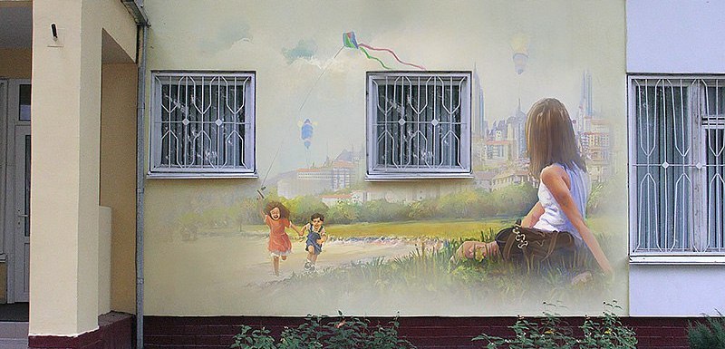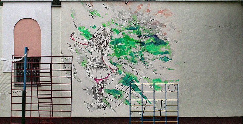 «Однажды школьники сказали мне, что воспринимают свое пребывание в доме как вынужденное заключение, — рассказывает Александра Лазаренко. — После подобных разговоров с детьми и родилась идея совместно с ребятами обустроить их окружение: сделать яркую роспись скучных серых стен веранды и беседок. Красивые и эффектные рисунки сделают мир вокруг них светлее и веселее».