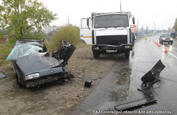 В Гомеле грузовик выехал на встречную полосу и столкнулся с Volkswagen. Водитель легковой машины погиб
