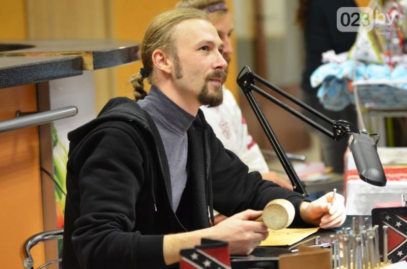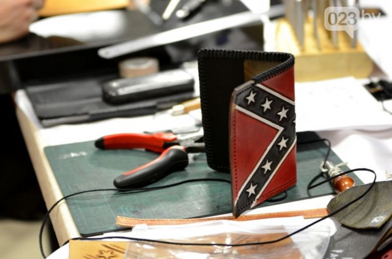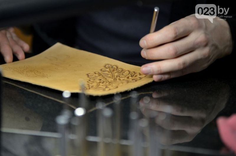 А мужчины окружили молодого человека с молотком в руках. Вячеслав Кулаков работает на химзаводе, а в свободное время изготавливает обложки для документов, ремни, браслеты и другие изделия из натуральной кожи.