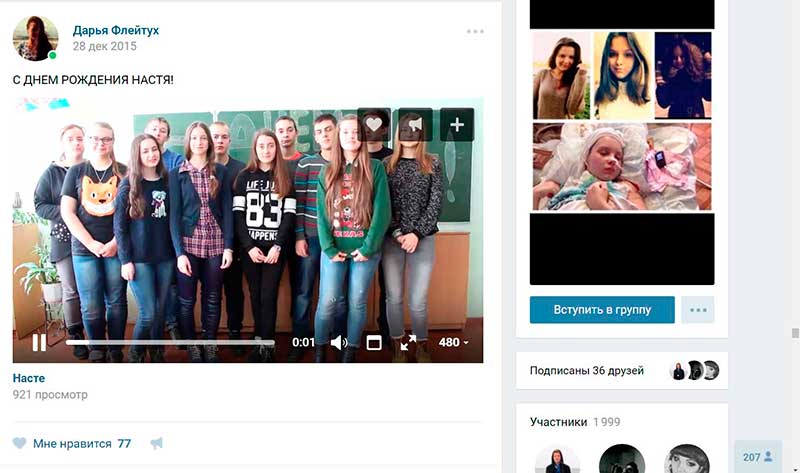 На странице ВКонтакте Настю поздравляют с днём рождения одноклассники.