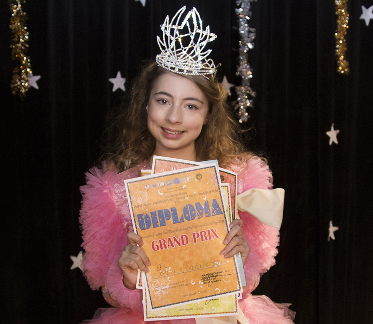 Софья Старовойтова привезла из Подебрад в Гомель Гран-при в номинации «Талант», эксклюзивную корону в форме крыльев ангела и специальные подарки.