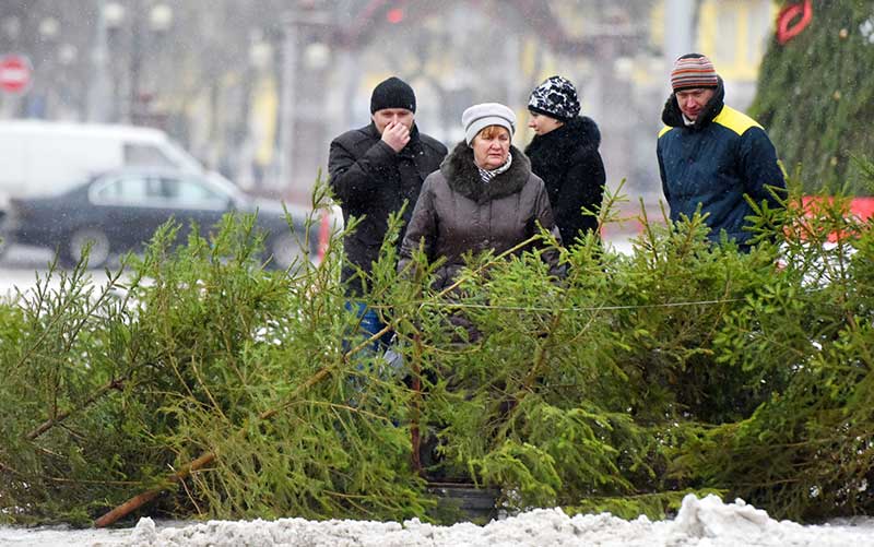 Пришло время поставить ёлку. Какую? Гомельские предновогодние ярмарки и супермаркеты предлагают широкий выбор — от миниатюрных искусственных до живых высотой почти четыре метра. И на такие, говорят продавцы, есть спрос. Берут их в квартиры с высокими потолками.