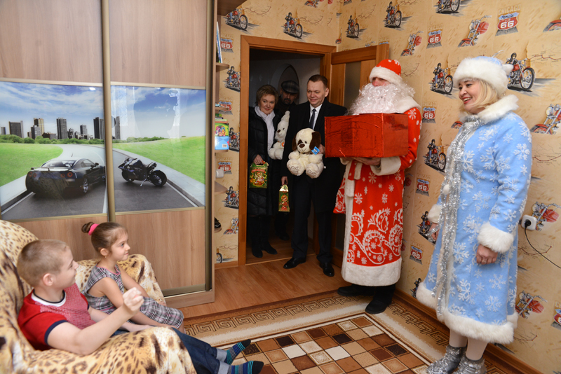 Гости хотели лично поздравить и папу ребятишек, Вячеслава Алексеевича, у которого 30 декабря был день рождения, но тот оказался на работе. Поздравления принимала мама – Марина Ивановна. Ей же глава администрации задал вопрос: в чём нуждается семья? Узнав, что детские инвалидные коляски очень тяжёлые, из-за чего Илья, проживающий на восьмом этаже, практически не выходит на улицу, Дмитрий Алейников пообещал в новом году проблему решить. А заодно и оборудовать у подъезда необходимый пандус.