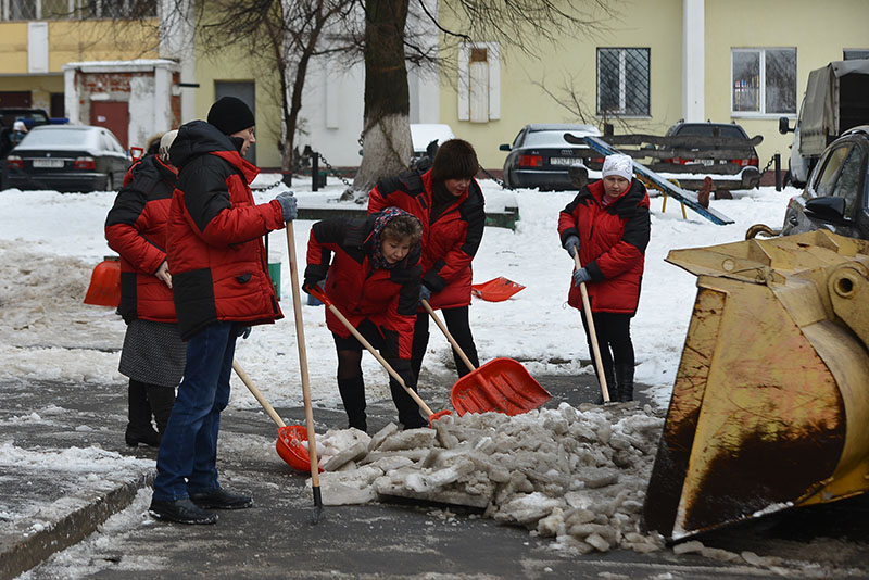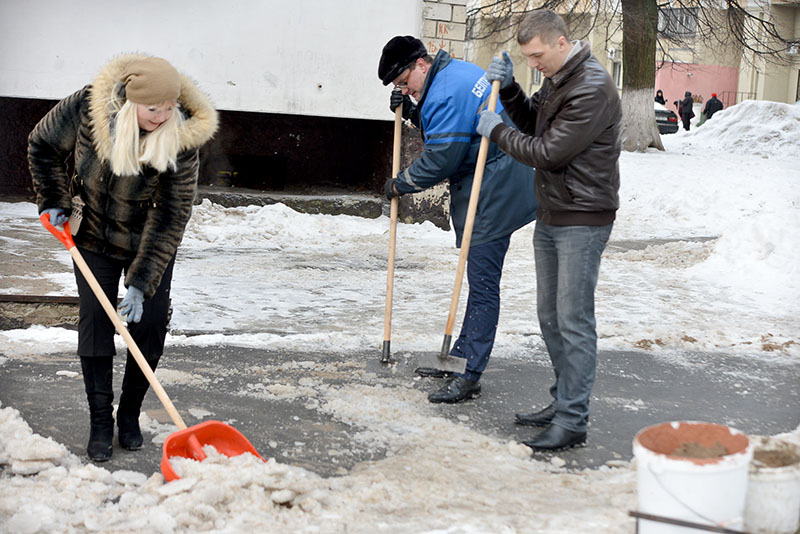 В Гомеле борьбу с травмоопасной наледью возглавили депутаты и чиновники