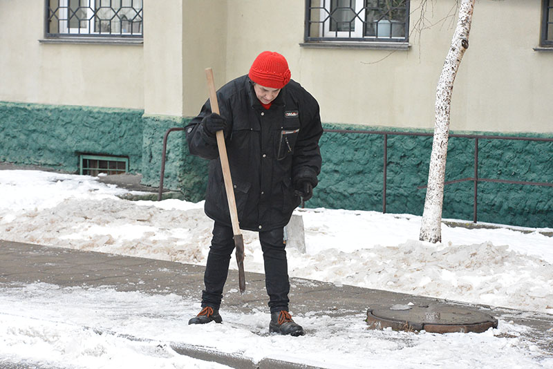 На улице Павлова тем временем люди собрались сами. Председатель комитета общественного самоуправления Владимир Усов организовал своих соседей. Это далось ему легко – помог опыт работы на руководящем посту в Гомельском облисполкоме. Жители споро расчистили себе пешеходные дорожки, тем более что на помощь им пришли рабочие из местного РЭУ. В субботу у них выходной, но они не смогли смотреть со стороны на то, как кто-то помогает выполнять им их работу.
