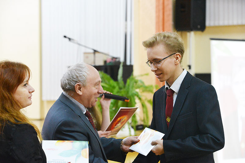 Буквально на днях у нас прошло именно такое мероприятие, на котором мы чествовали победителей областного этапа. С помощью попечительского совета гимназии для этого были приобретены на разные суммы торговые сертификаты в один из гомельских гипермаркетов. Родителям победителей вручили наши календари, учителям — грамоты и денежные премии.