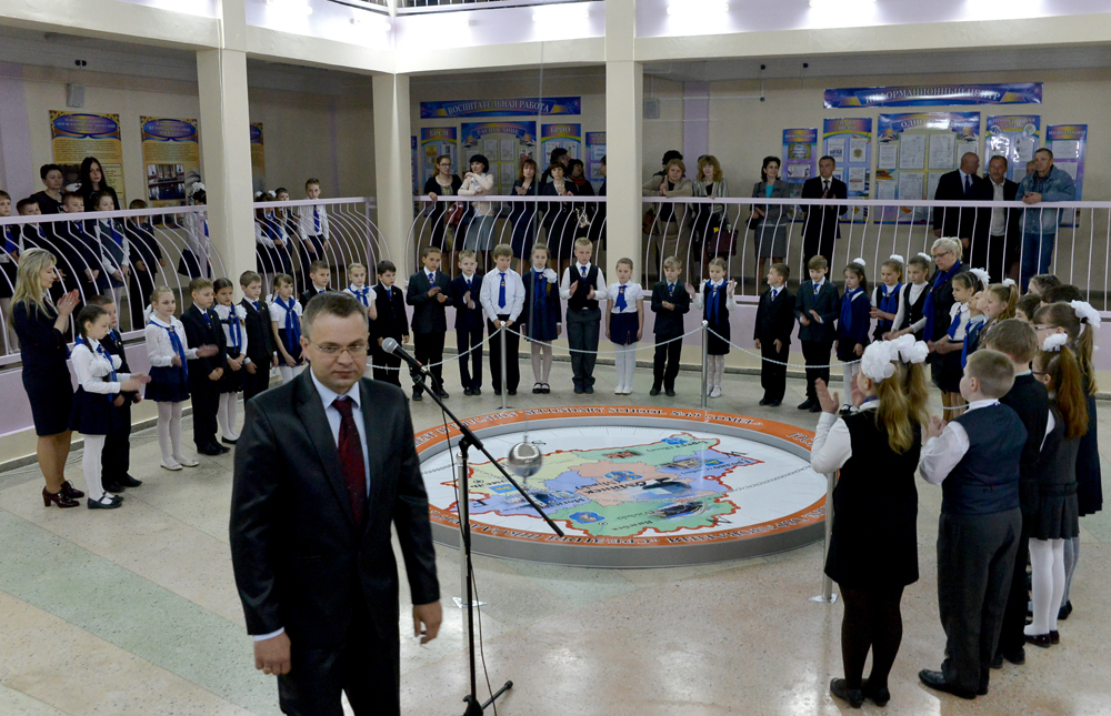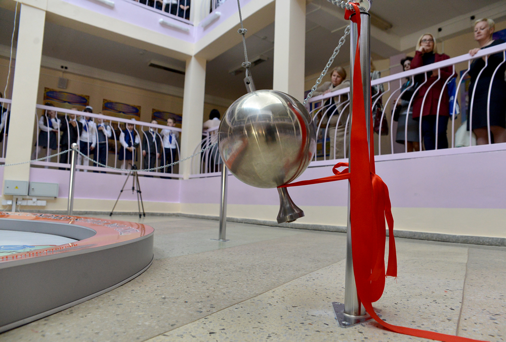 Директор школы поздравил с событием учеников и заметил, что устройство маятника – только часть задуманного проекта по нестандартному изучению в школе законов физики и, в частности, механизма вращения небесных тел. Вскоре дети смогут изучать его с применением 3D-технологий на проекционном оборудовании, экран для которого уже смонтирован на одной из стен атриума.