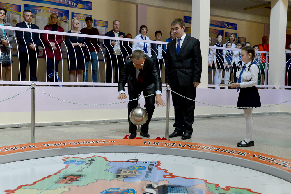 С пуском маятника директора школы Александра Машкарова и его учеников поздравил глава администрации Советского района Дмитрий Алейников. Он назвал событие важной вехой в развитии системы всего среднего образования региона. От идеи до её воплощения прошло более десяти лет, но зато всё было сделано основательно. Необходимые расчёты выполнили сотрудники технического университета имени П.Сухого и университета транспорта. А изготовить маятник и подвесить помогли сотрудники ряда гомельских предприятий, в том числе химического завода.