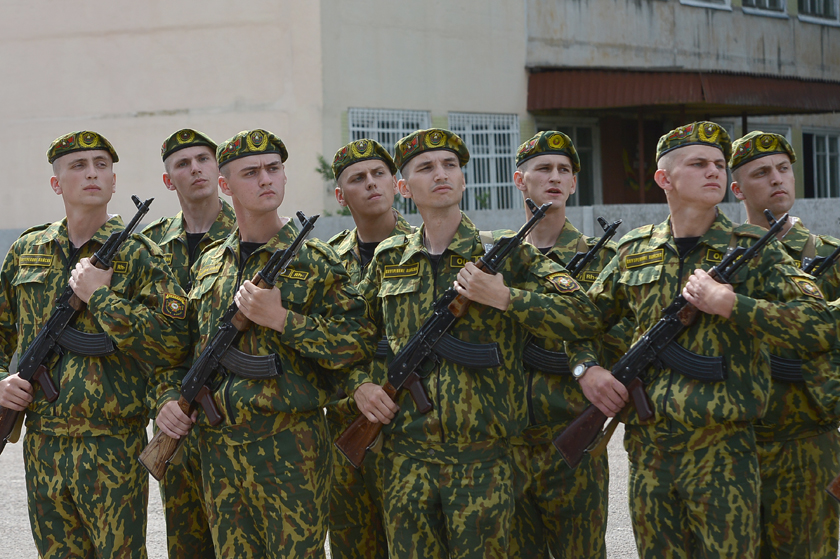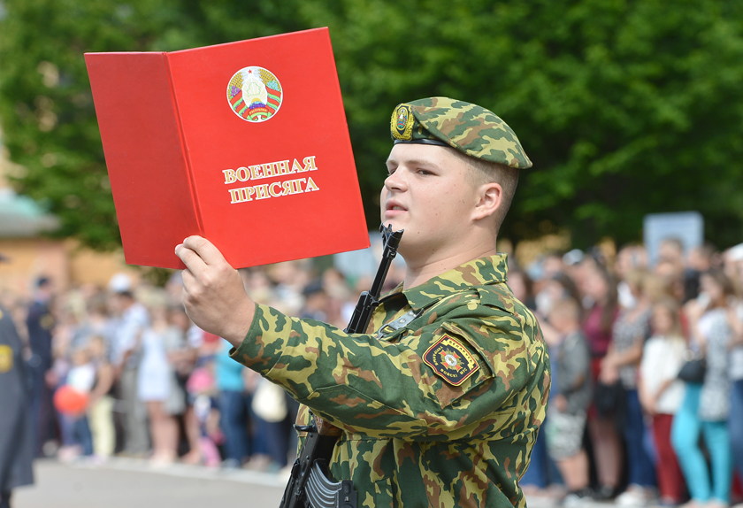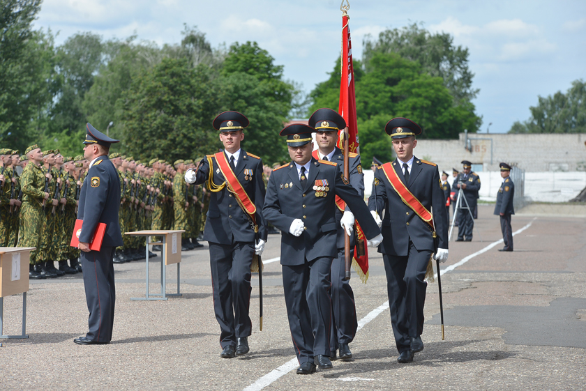 Присягу вчерашние юноши принимали под знаменем милицейской бригады. А это 126 человек из Гомельской и Могилёвской областей. Все они обладают отменным здоровьем, как минимум средним образованием, безупречной биографией и стремлением служить во внутренних войсках.