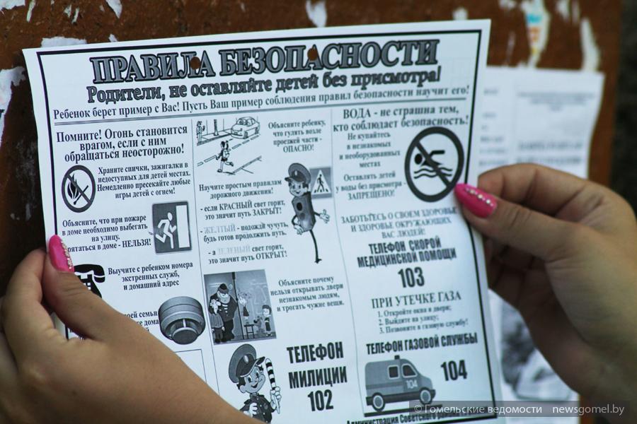 – Памятки родителям, чтобы они не оставляли без присмотра своих детей, учили их соблюдать правила дорожного движения, осмотрительно вести себя с электроприборами, не играть со спичками, – рассказала первый секретарь Советской районной организации ОО БРСМ Анжелика Решенок. – Листы с информацией мы собираемся разместить и на дверях подъездов, чтобы напомнить каждому жителю района о необходимости соблюдения правил безопасной жизнедеятельности.