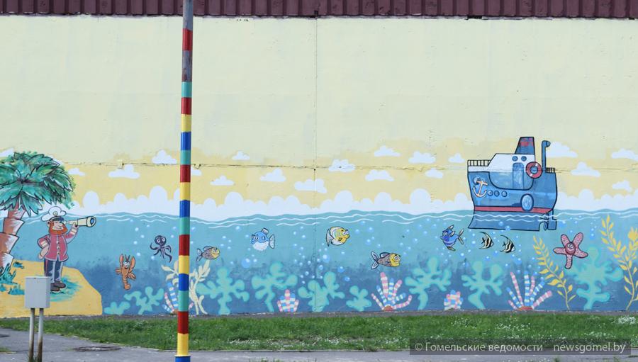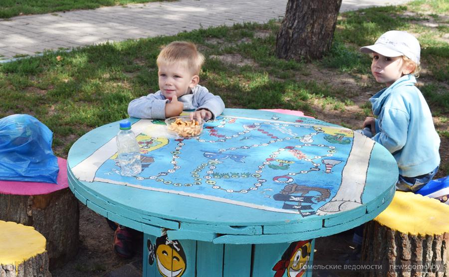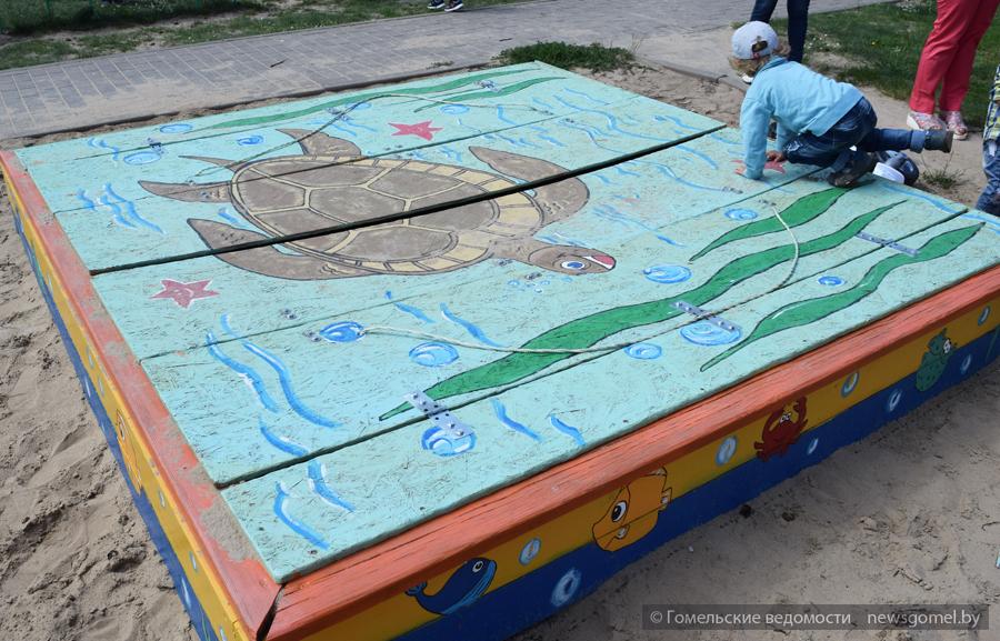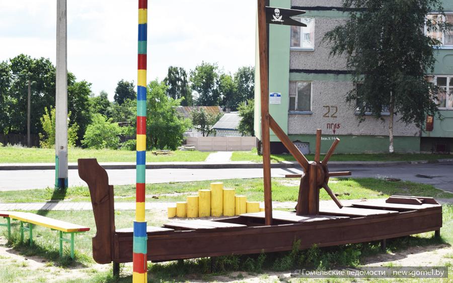 - К благоустройству дворовой территории мы решили подойти комплексно, - рассказала Ирина Пискун. – Предусмотрены зоны для малышей, для подростков, для отдыха жильцов постарше. Нашим малышам пришлась по душе пиратско-морская тематика. Они обожают корабль, задекорированную в мультипликационном стиле стену, песочницу, закрывающуюся на ночь специальной крышкой с нарисованной на ней черепахой, столик для игры в шахматы. Для подростков предусмотрены различные качели, готовятся футбольное поле (ОАО «Домостроительный комбинат» пообещало установить здесь металлическое ограждение), площадка для игры в волейбол, изготовлен шахматный стол.