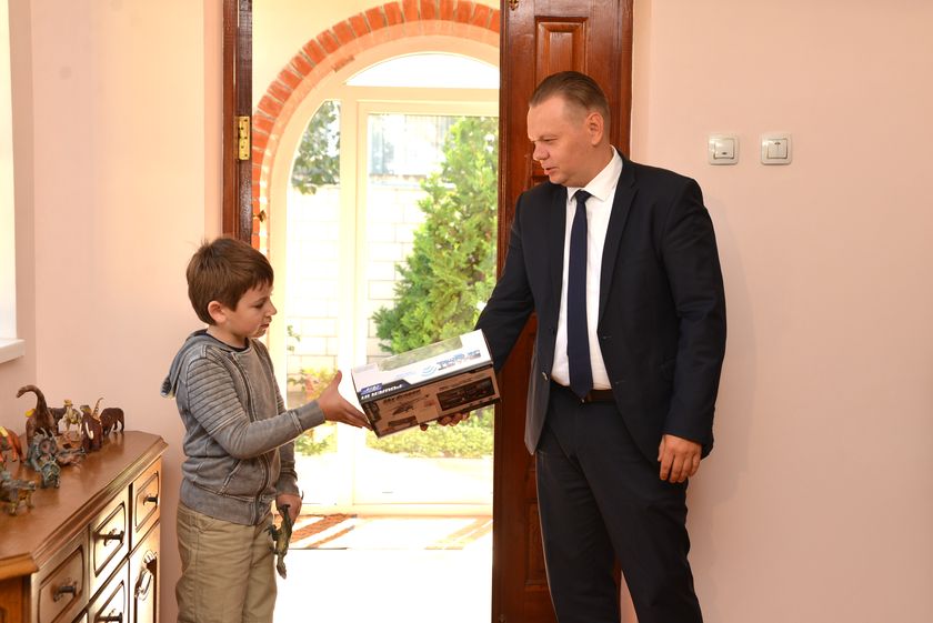 Семилетний Кирилл Алешко живёт с бабушкой и дедушкой. В этом году он пошёл в первый класс средней школы №39. В канун Дня знаний в гости к мальчику, страдающему неизлечимым заболеванием, приехала делегация администрации Советского района, возглавил которую её руководитель Дмитрий Алейников.