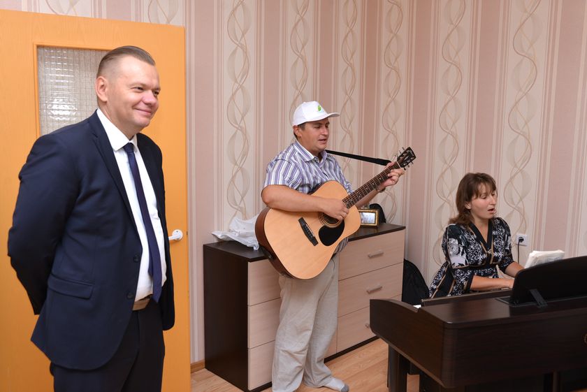 В этот же день Дмитрий Алейников посетил семью Ковгуновых. Здесь первоклассников нет, но ребятишек столько, что хватает на половину класса – супруги Дмитрий и Ирина воспитывают 11 детей. К поздравлениям главы администрации с наступающим Днём знаний присоединились представители химического завода и «Милкавиты». Они подарили обрадованным школьникам наборы настольных и развивающих игр, а также пакеты с молочной продукцией, предназначенной специально для детей.