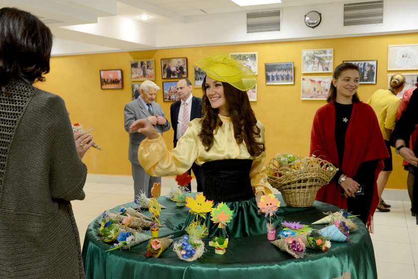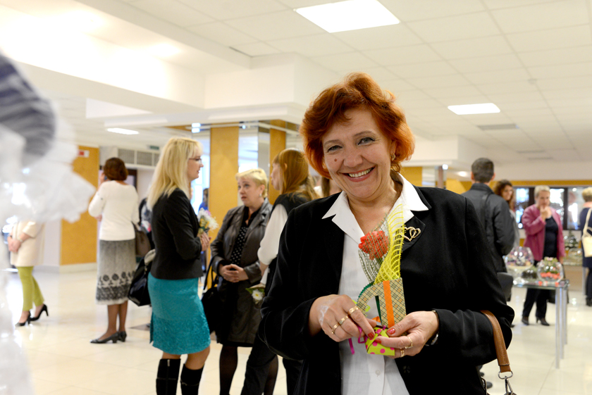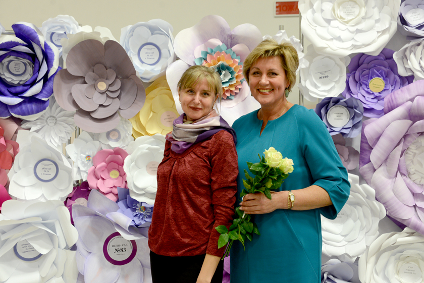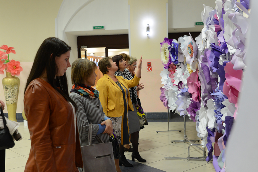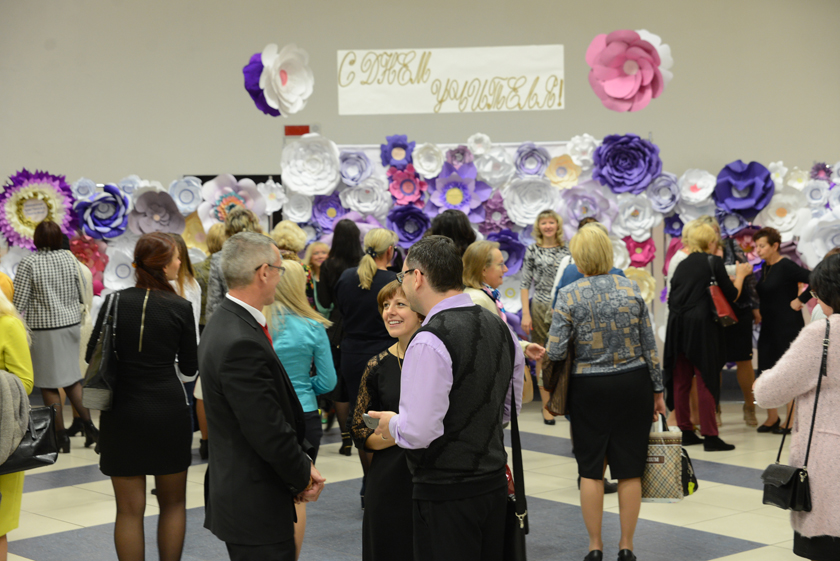 Благодарность учителям выразили и их воспитанники. Они вырезали из бумаги контуры своих ладошек и написали на них приветы учителям. Этими открытками был украшен весь холл центра культуры. Там же работали выставки достижений заслуженных учителей и фотографий со значимых для отрасли событий.