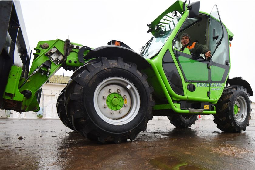 Тракторист Сергей Валюшенко в «Морозовичи-Агро» перешёл работать полгода назад из соседнего хозяйства. Пару месяцев назад его пересадили на итальянский погрузчик Merlo Panoramic, который может и солому утрамбовывать, и силосную массу откусывать, и брёвна укладывать, и зерно грузить.