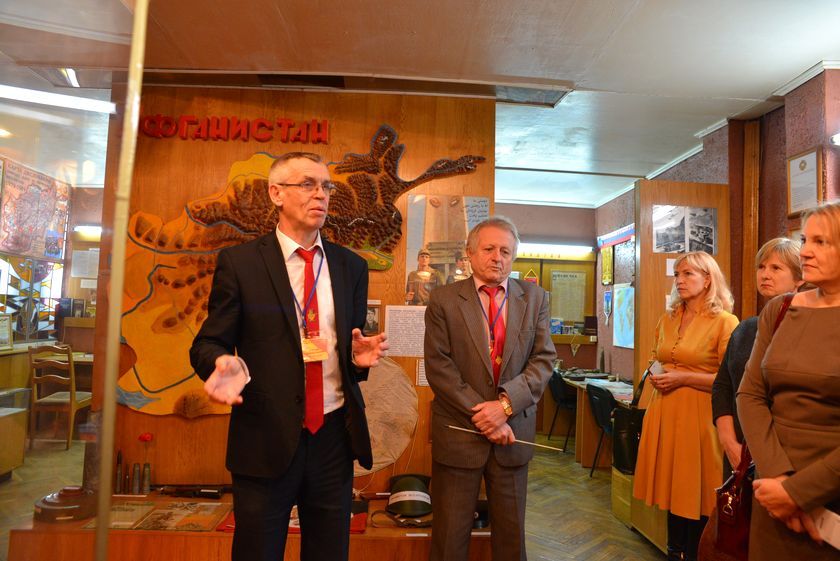 Экскурсия в гимназии №51 началась с посещения Музея воинов-интернационалистов. Гости с интересом осмотрели экспонаты. Письма, вырезки из газет, фотографии и даже кассеты с подборкой пронизывающих душу песен об Афгане — эти и другие артефакты, по словам директора гимназии Александра Пахучего, передают в музей родственники погибших героев необъявленной войны.