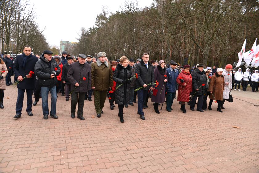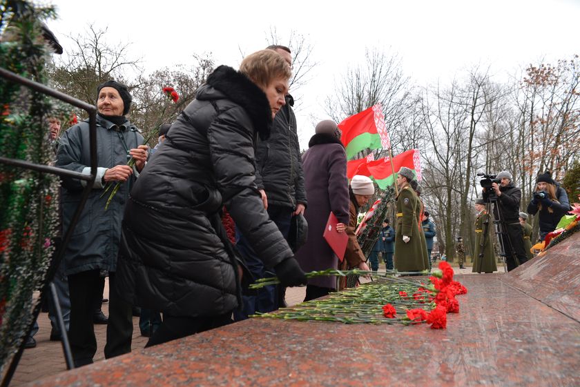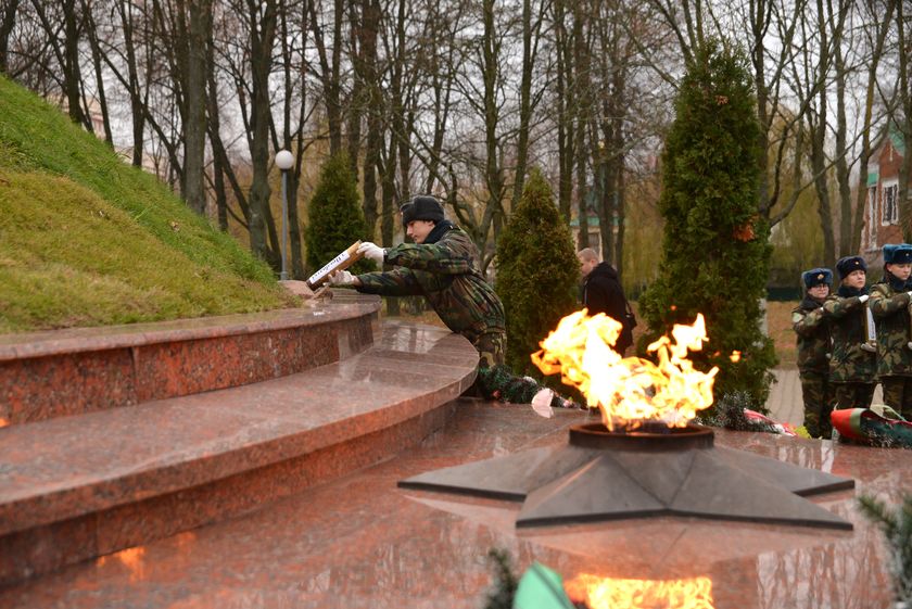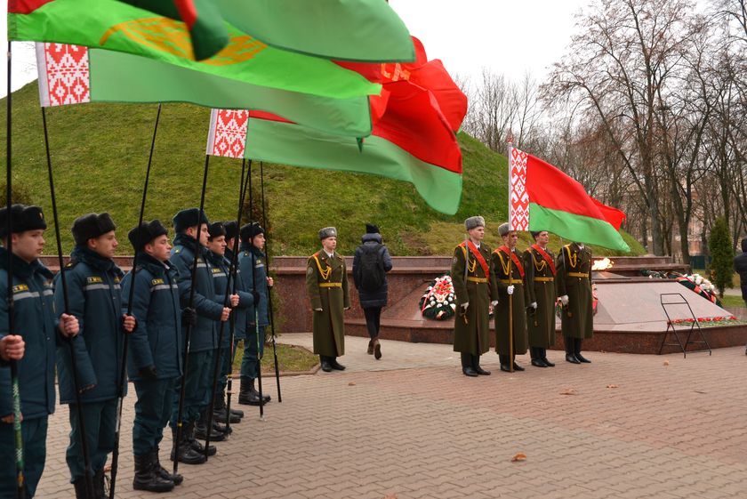 Сегодня состоялся торжественный митинг с участием руководства Советского района. Прошёл он традиционно у Кургана Славы на Речицком проспекте. Здесь же молодёжь приняла участие в очередном этапе патриотической акции «Беларусь — земля славы ратной». Курсанты внесли в подножие кургана землю, привезённую с мест ожесточённых боёв Великой Отечественной и ратных подвигов.