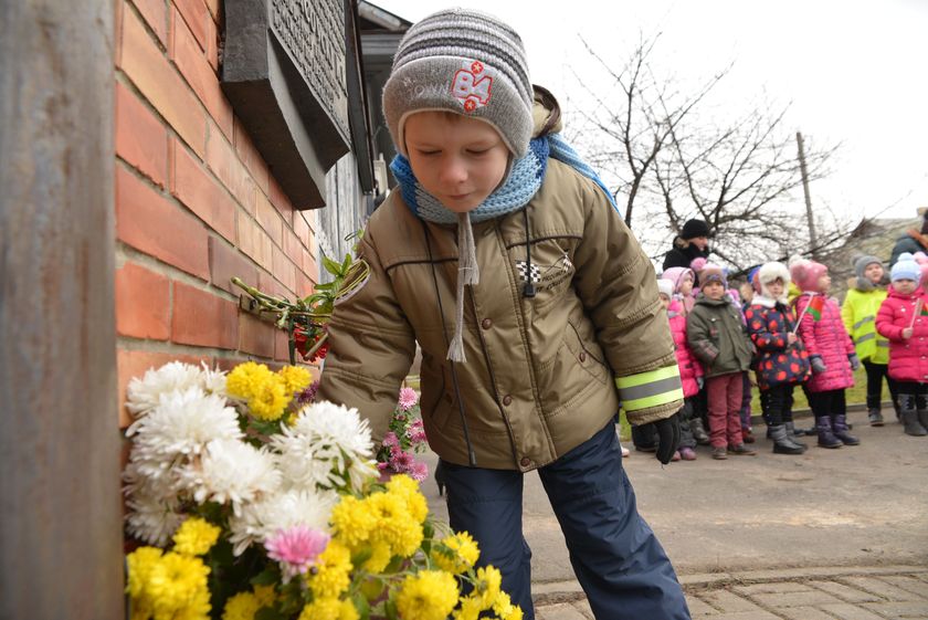 Утром жители улицы Рокоссовского и воспитанники детского сада №58 возложили живые цветы к памятной доске с барельефом Маршала Советского Союза Константина Рокоссовского.
