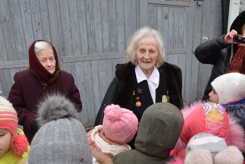 Почётными гостями встречи стали старожилы улицы – ветераны войны Осипенко Мария Ивановна и Шаброва Ксения Нестеровна. Они рассказали маленьким гомельчанам, как освобождали город 74 года назад и ответили на вопросы детей. Малыши интересовались, за какой подвиг можно было получить награду, сколько лет было сегодняшним ветеранам во время войны и то и дело просили воспитателей сделать фото на память.