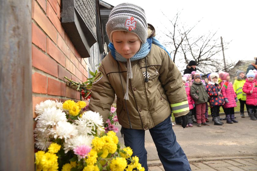 В знак уважения освободителям Гомеля дети прочитали стихотворения о войне и исполнили песню «Вечный огонь». После вместе со взрослыми возложили живые цветы к памятной доске и почтили минутой молчания павших в войну партизан и подпольщиков.