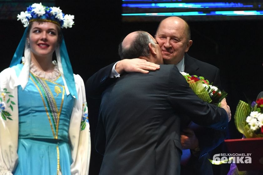 Со сцены ОКЦ звучали торжественные речи и вручались награды. На празднование круглой даты приехал премьер-министр Беларуси Андрей Кобяков с посланием от Президента. Александр Лукашенко из специального фонда выделил Гомельщине в подарок 1 миллион рублей. Деньги целевые, должны быть направлены на завершение в 2018 году строительства двух плавательных бассейнов в Ветке.