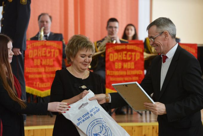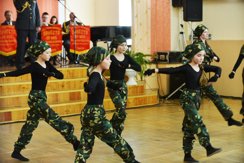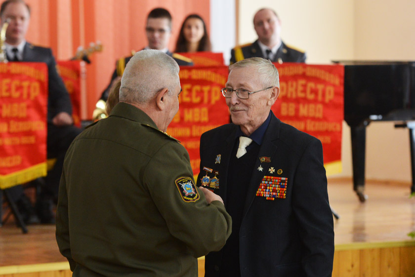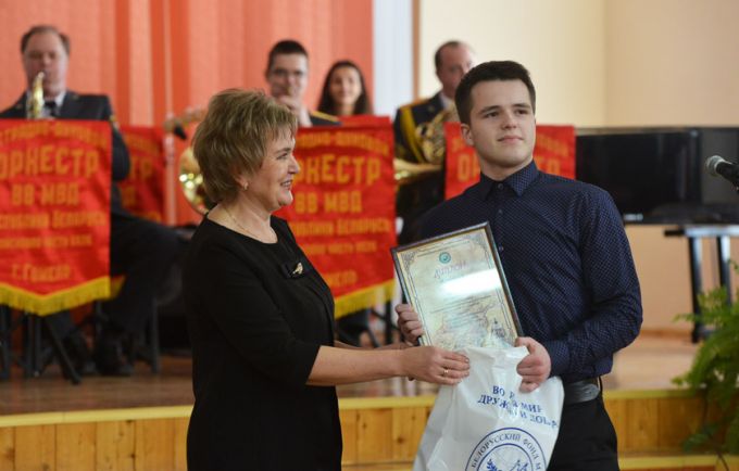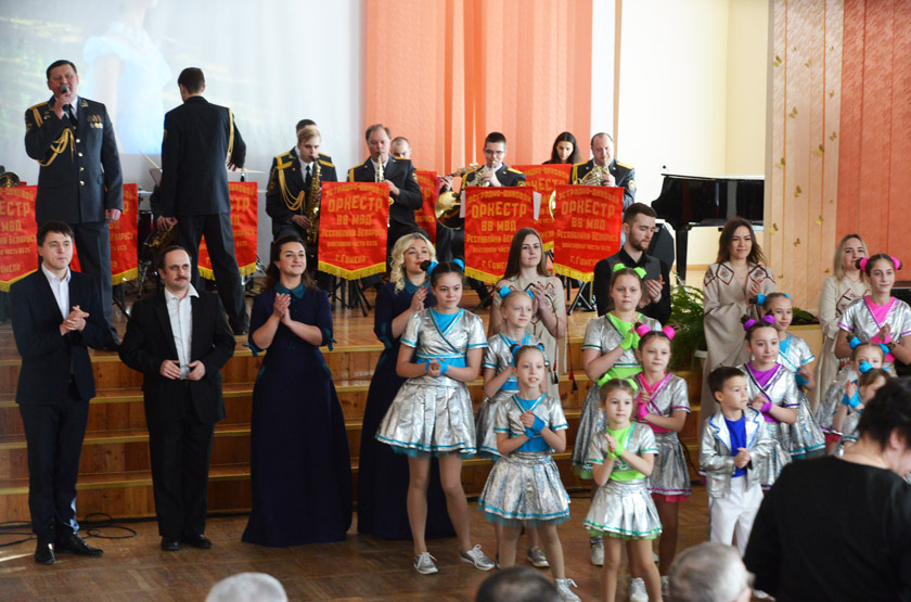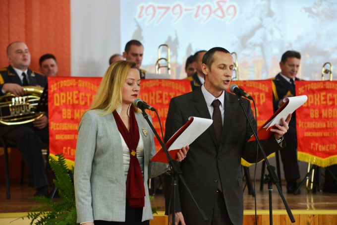 А фанфары в честь юных патриотов исполнил эстрадно-духовой оркестр Внутренних войск МВД, базирующийся в гомельской части №5525. Вся бригада по охране правопорядка, к слову, также была награждена Почётной грамотой. Военный музыкальный коллектив стал одним из главных участников концерта, подготовленных творческими силами района в честь воинов-интернационалистов – павших и живых.