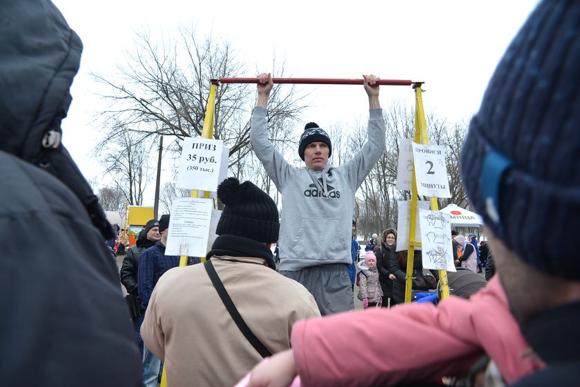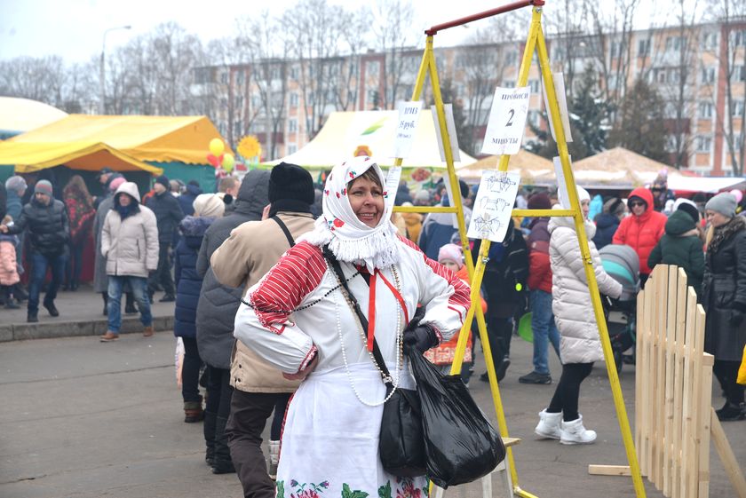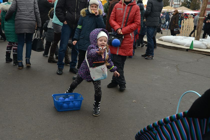 Папы с детьми проверяли меткость в игровом тире и получали за победу мягкие игрушки. Мамы тем временем делали селфи с масленичными куклами. Молодые парни пробовали забраться на 13-метровый столб за призом. Школьницы писали желания на «птичках добра» и украшали ими «дерево желаний».